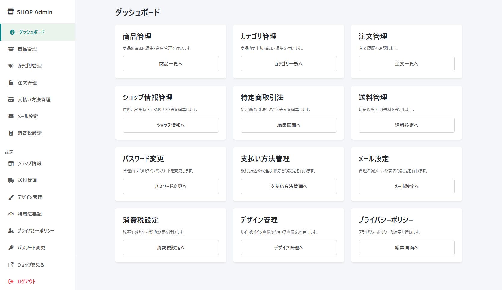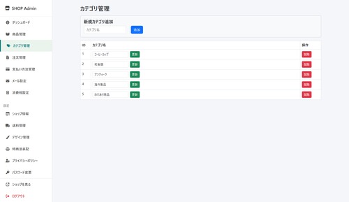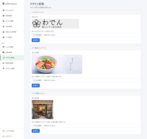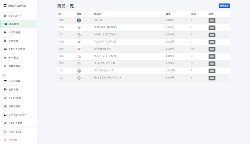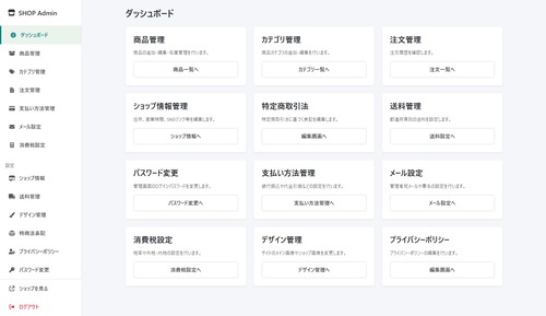 ファイルをサーバーにアップロードするだけで、管理画面付きのネットショップが完成します。