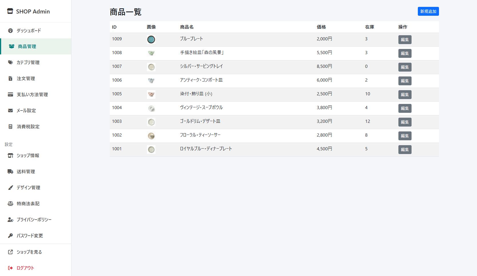 ○ 商品管理(追加・削除/画像5枚まで登録可)